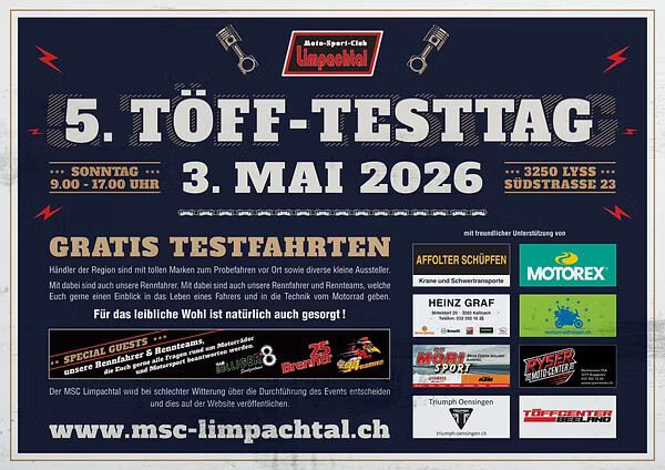 5. Toff-Testtag am Sonntag 3. Mai 2026 in Lyss! 🏍️